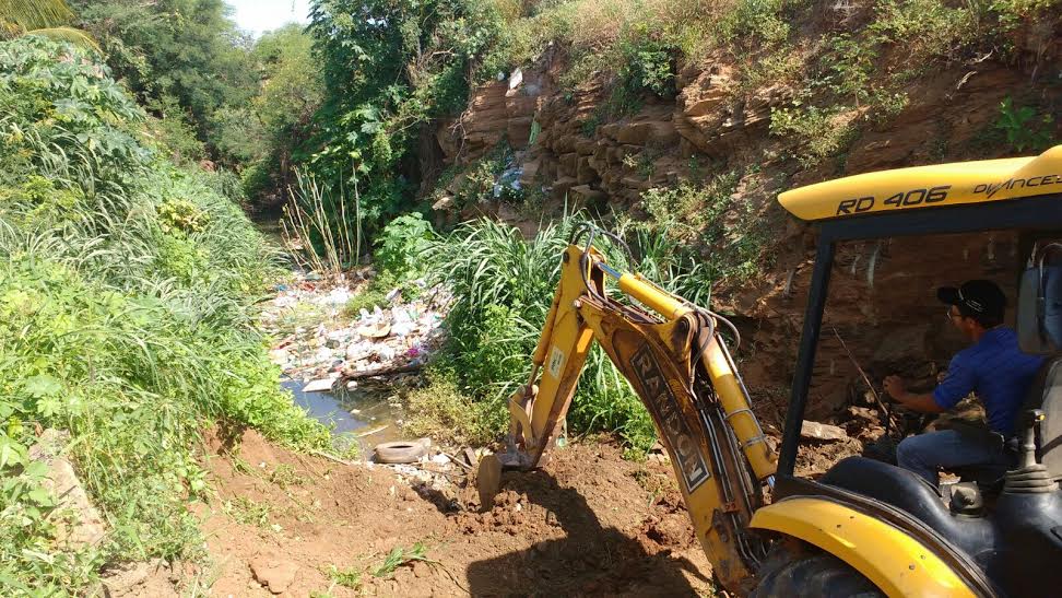 O local, estava comprometido quanto a limpeza, pelo fato de está sendo usado como depósito irregular de lixo e de entulhos e de acumular água parada, o que motivou a execução do Plano Emergencial de Controle do Mosquito Aedes Aegypti do município, in loco.