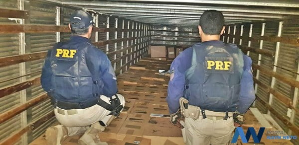 Durante uma fiscalização no Km 182 da rodovia, foi abordado um caminhão ocupado por três pessoas. Após entrarem em contradição, foi realizada uma vistoria no interior do veículo e encontradas 155 caixas de cigarro em meio a engradados vazios.