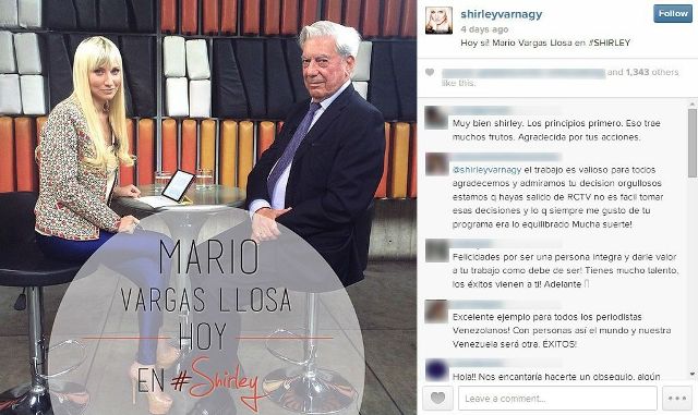 “Ontem não transmitiram a entrevista completa que fiz com Vargas Llosa. Eu não vou ficar em silêncio no meu espaço. Hoje eu parei de trabalhar para Globovision”, anunciou Shirley Varnagy no Twitter.