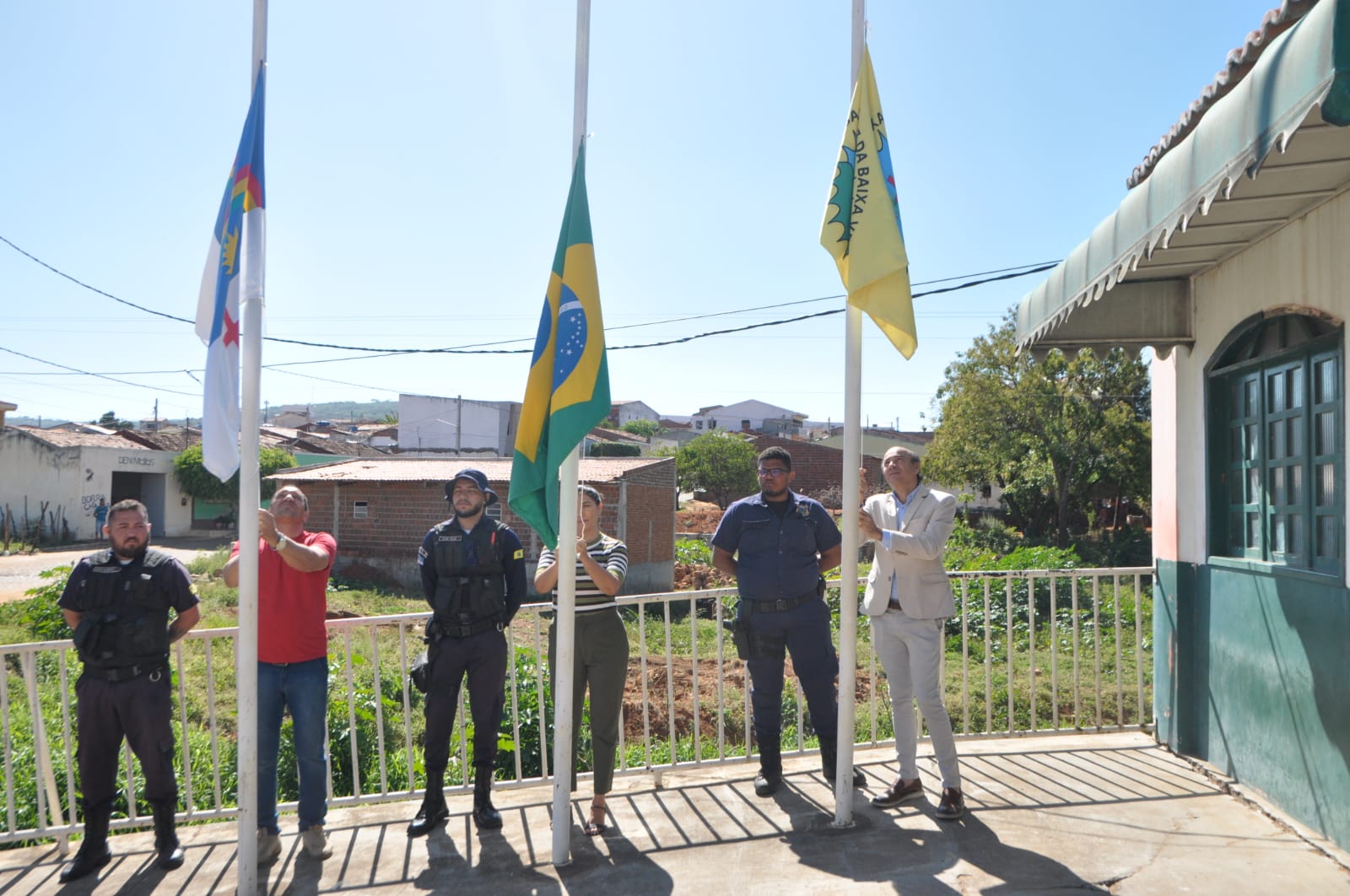 Pela manhã, logo cedo, o prefeito e alguns convidados participaram da Alvorada com o hasteamento da bandeira do município, na sede da Prefeitura Municipal.