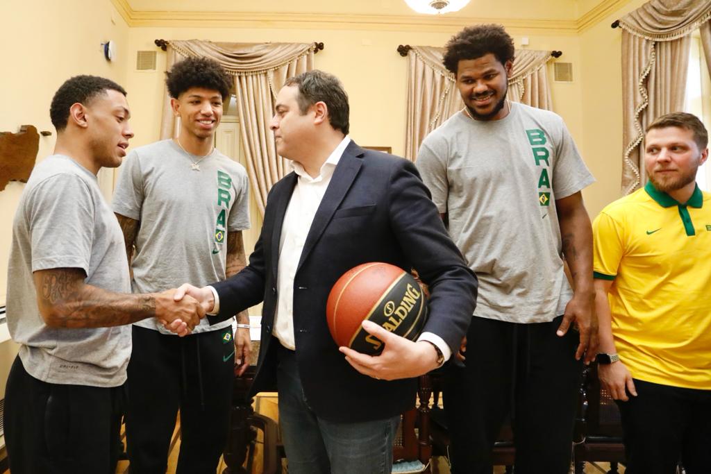 Também estiveram presentes no encontro o secretário estadual de Educação e Esportes, Marcelo Barros; o secretário executivo de Esportes, Davi Oliveira; o secretário de Esportes do Recife, Rodrigo Coutinho; o presidente da Federação Pernambucana de Basquete, Cláudio Monteiro; o diretor executivo da Copa América de Basquete, Maurício Carlos; o secretário-geral da Confederação Brasileira de Basquete, Carlos Fontenelle; e os jogadores Didi Louzada, Yago Matheus e Cristiano Felício.