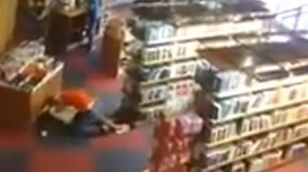 No YouTube, circula imagem da confusão, com os dois homens já no chão da livraria.