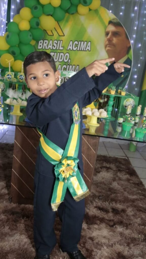 O tema da sua festa foi ‘Jair Bolsonaro’, isso mesmo, o pequeno é fã do Presidente da República.