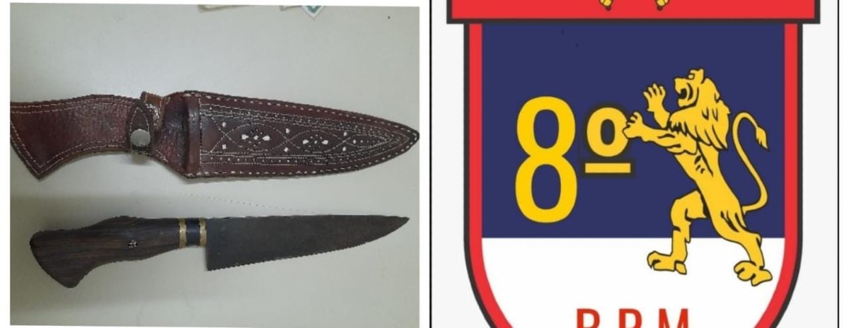 Chegando ao local, avistaram o menor saindo da residência pela porta da frente. Durante abordagem, foi encontrado em sua cintura uma faca peixeira e uma chave de roda.