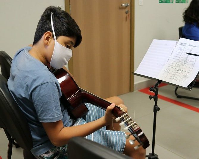 Estão sendo oferecidas as oficinas de pintura para crianças Brincando com as Cores; Arte e Natureza, oficina de artesanato com materiais alternativos; estamparia artesanal Entre Tintas e Tecidos; Violão Elementar; Violão com ritmos brasileiros; Violão para Crianças; Violão para iniciantes; e Canto Coral para crianças.