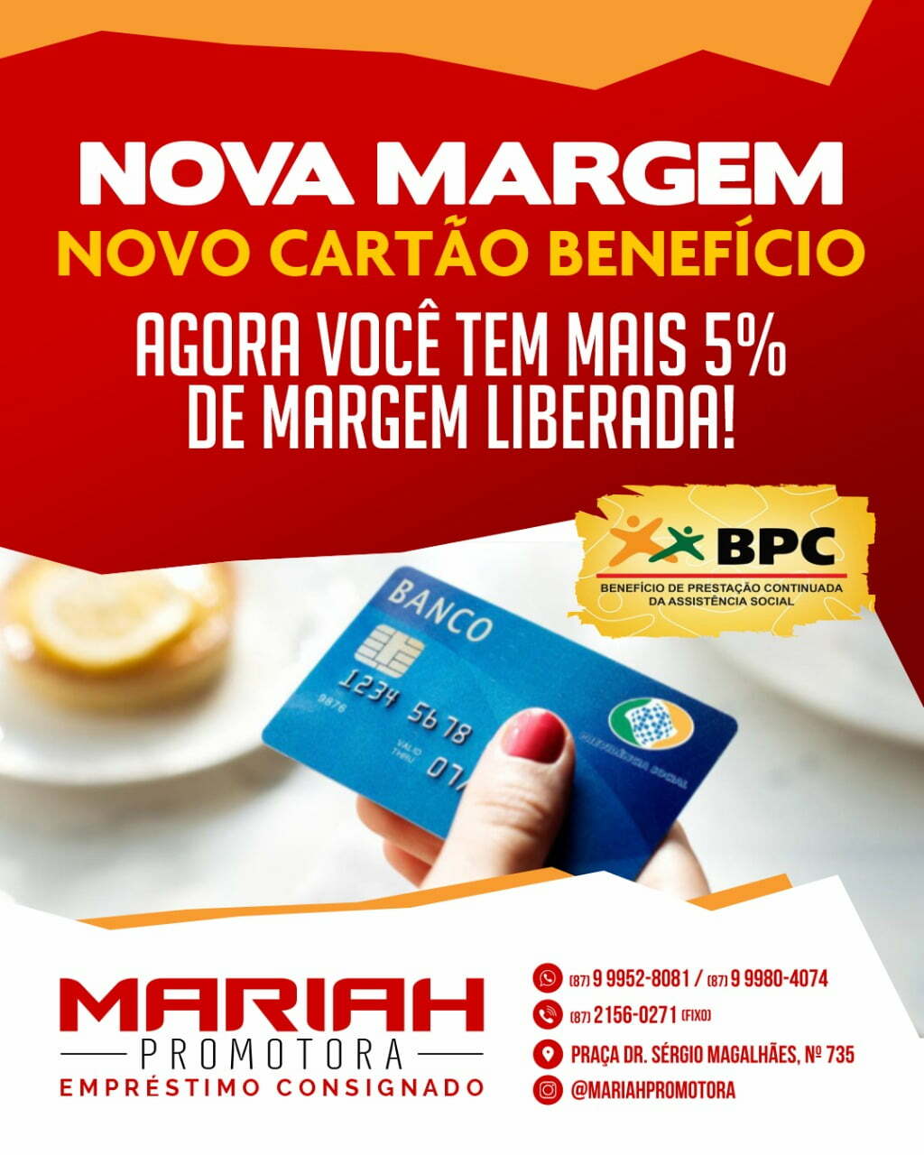 Você que recebe o Auxílio Brasil, através do Caixa Tem, estamos liberando empréstimo consignado para todos vocês. Quem fizer com a Mariah Promotora ganha brindes na hora. Para os aposentados e pensionistas do INSS, loas e BPC teve aumento de margem de 5% de novo pelo cartão benefício.