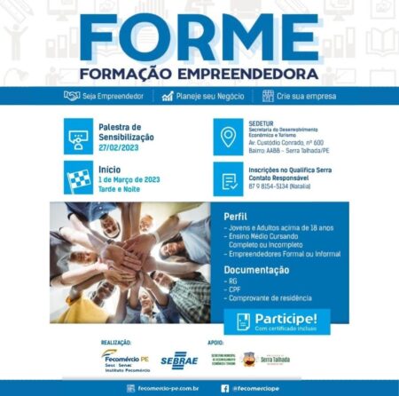 Estão abertas inscrições para o Programa de Formação Empreendedora (FORME) no município de Serra Talhada. O programa é uma realização…