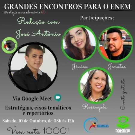 Nesta sábado (10), o Curso Domínio promoverá o 2º Encontro de Redação Nota 1000, no qual contará com a participação…