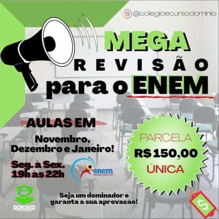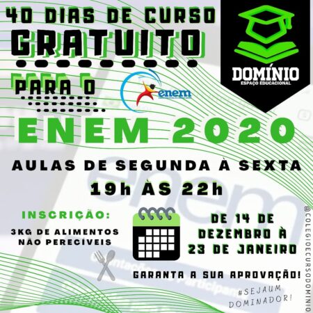 O Curso Domínio abre uma chance única para você que pretende fazer o Enem. Uma MEGA revisão para o vestibular.…