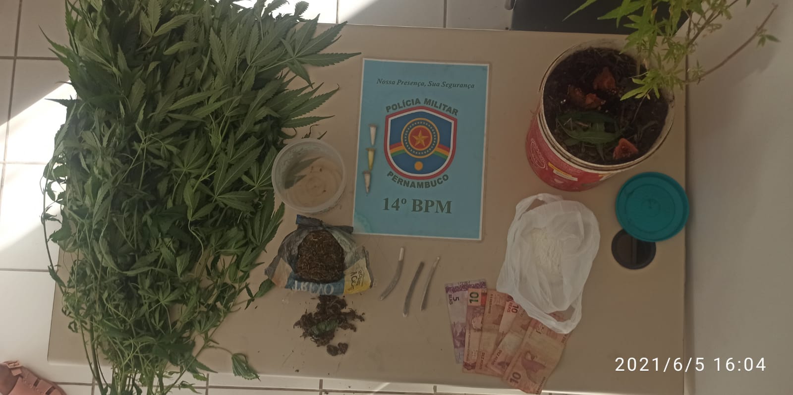 De acordo com as informações, os Policiais Militares 14º BPM foram uma informados que no endereço, havia três indivíduos consumindo e traficando entorpecentes, como também, estariam cultivando alguns pés de maconha no muro da residência. De imediato, realizaram deslocamento até o local, onde constataram a veracidade do fato.
