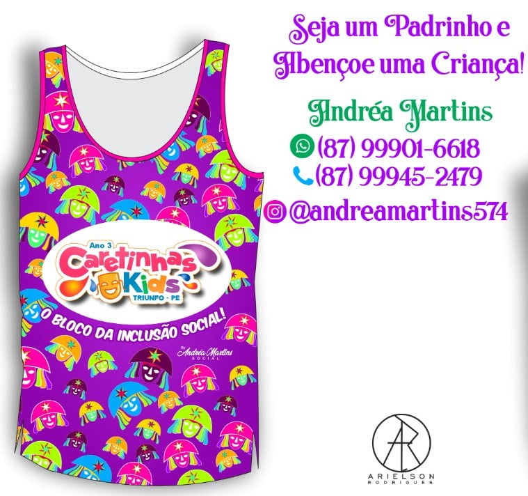 A publicitária e empreendedora, Andrea Martins, da cidade de Triunfo-PE, iniciou na última segunda-feira (09), a busca por padrinhos para mais uma edição do seu Bloco Infantil Caretinhas Kids na Folia, O Bloco da Inclusão social.